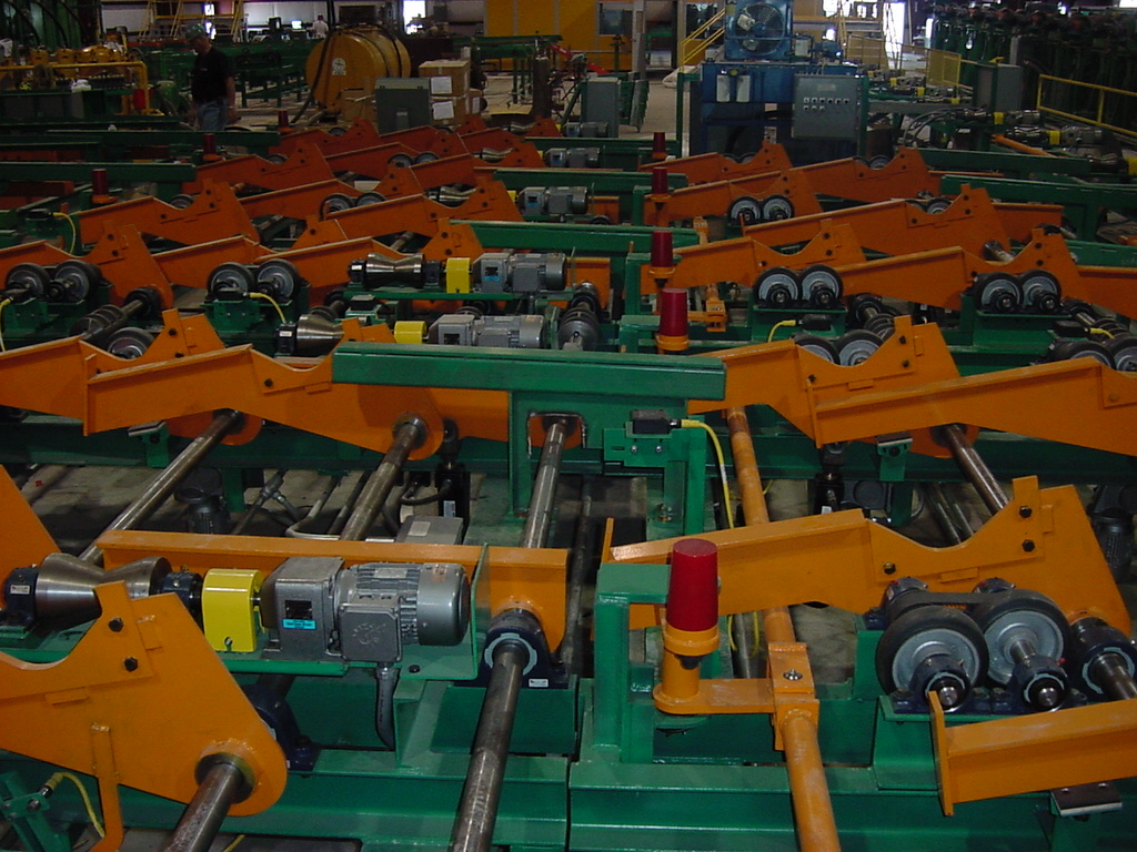 This equipment end-aligns, transfers, and rotates pipes for critical end inspections at the rate of 3 pipes per minute.