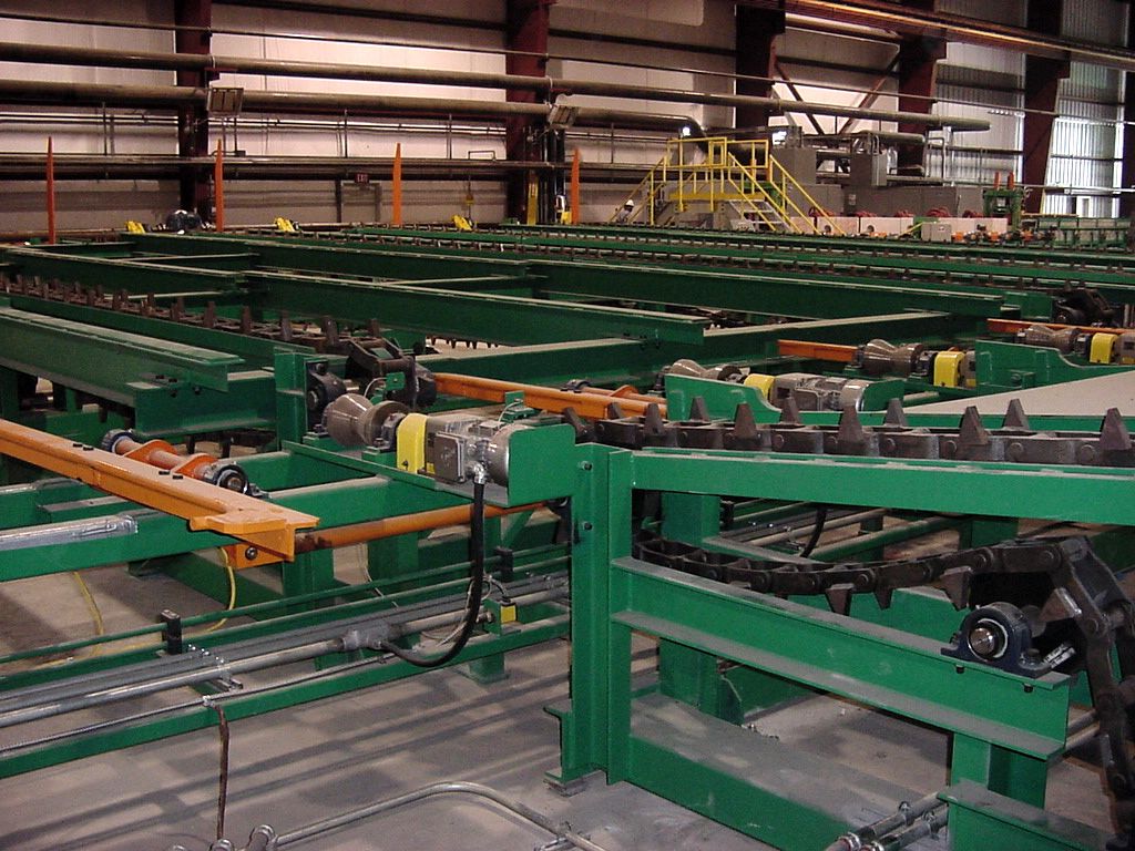 Engineered chain with heavy dogs force the hot pipe to roll across the transfer table frames.