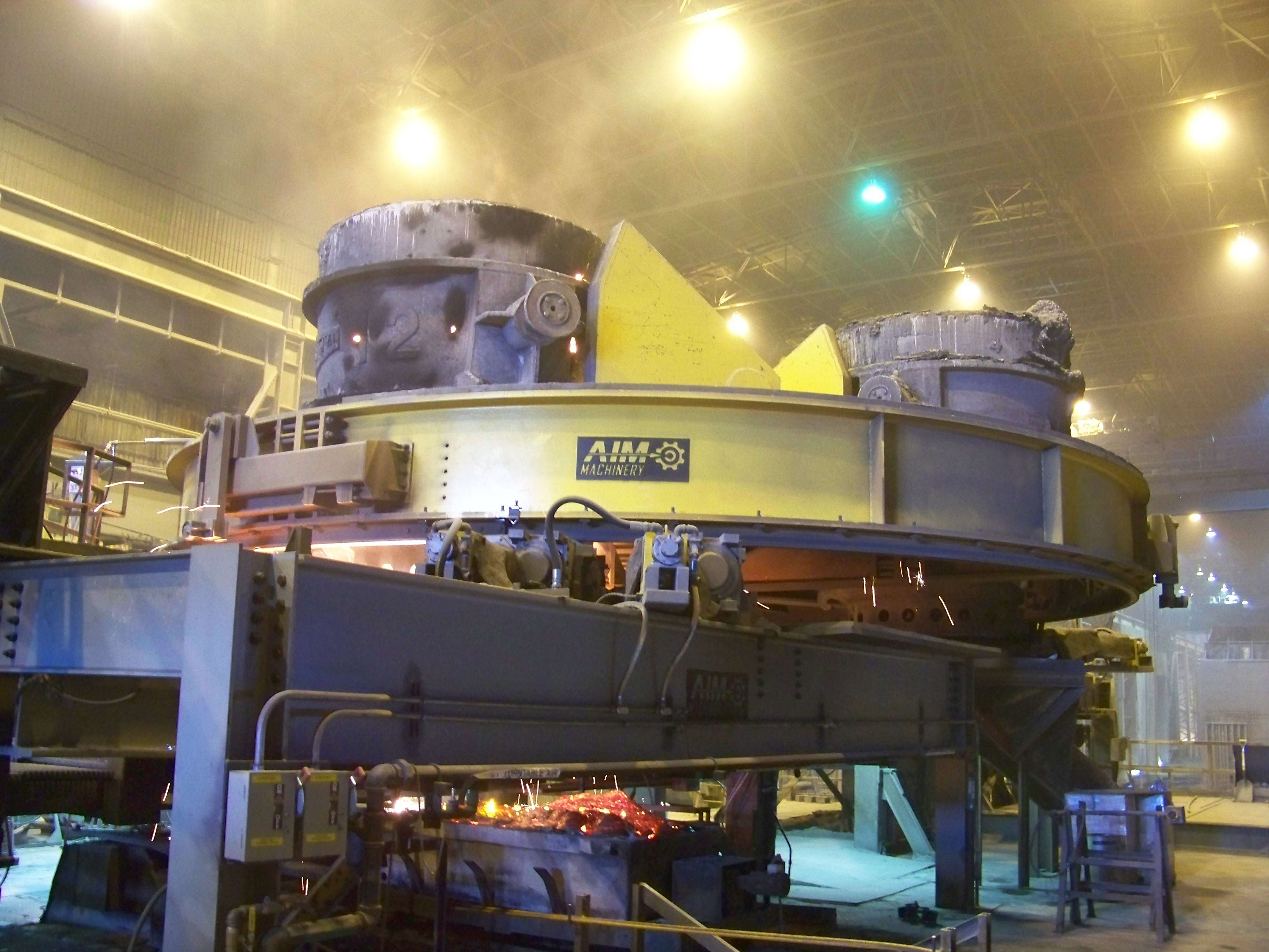 This turntable is designed to hold 3 steel ladles. It improved the safety and efficiency of the caster operation.